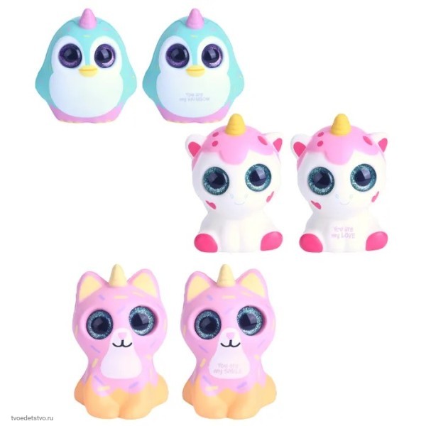 Всего в коллекции 6 разных сквишей и каждая из игрушек является сюрпризом, поэтому выбрать конкретную жмякалку сквиша нельзя, собери их всех!
