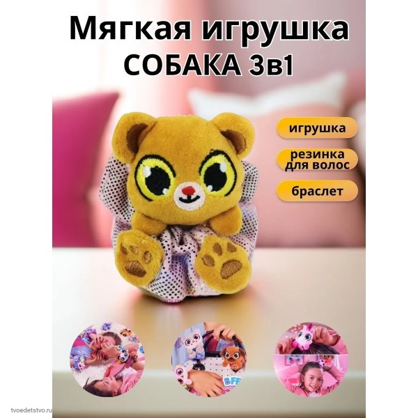 Мягкая игрушка резинка для волос Собака — это пушистый и красивый аксессуар, который понравится девочкам и малышам. BEST FRIENDS - это блестящая коллекция мягких игрушек, которые понравятся каждому ребенку!