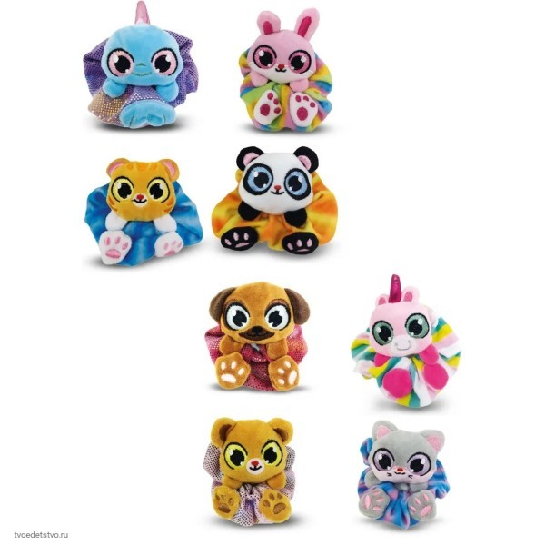 Плюшевые резинки — удобный способ собрать волосы, а также подчеркнуть индивидуальный стиль ребенка. Украшения с милыми зверятами идеально подходят как детские аксессуары: их можно использовать не только по прямому назначению, но и украсить сумку или играть с ними как с игрушками. В коллекции представлены 8 разных зверят-игрушек — соберите их все для интересной игры или создания собственного украшения для волос. Милые животные подарят вам целое море радости и творчества. Ведь с такой игрушкой можно придумать массу веселых игр!