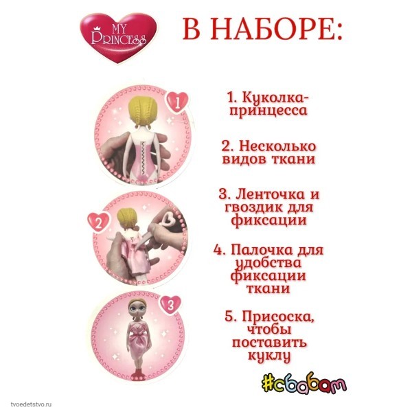 Преимущества набора: Кукла с аксессуарами — всё для полноценного игрового процесса в одной упаковке. Одежда для куклы своими руками — неограниченные возможности для смены образов. Каждая кукла этой серии повторяет образ принцессы