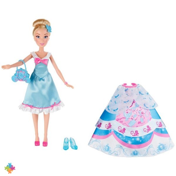 Золушка. Белокурая красавица, она одета в скромное платье с передником. Однако стоит сменить юбку наряда, и перед нами - красивое пышное платье, в котором можно смело отправиться на бал! Главное не забыть надеть волшебные туфельки - они также включены в комплект. Дополнительно в наборе прилагаются различные аксессуары для достойного завершения образа Золушки.