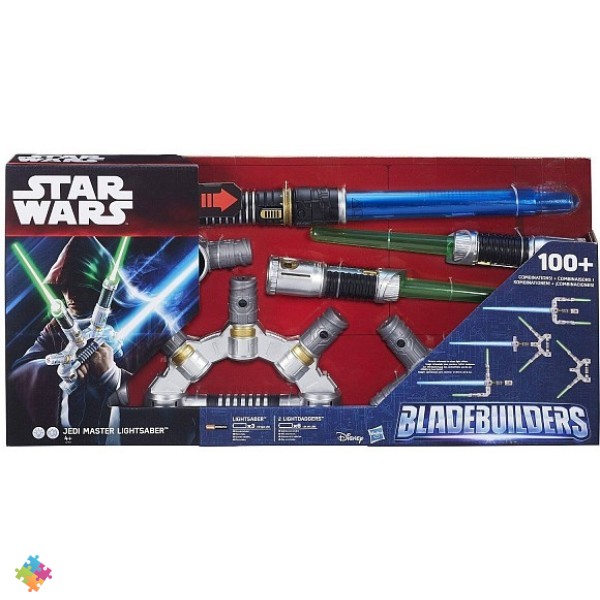 В комплект игрового набора входит основное лезвие светового меча, два коротких световых кинжала, рукоятка меча с расширением, два локтевых соединителя, соединитель-крестовина и двойной соединитель. Кроме того, этот меч совместим со всеми другими световыми мечами из новой коллекции Bladebuilders, которые Вы можете приобрести отдельно.