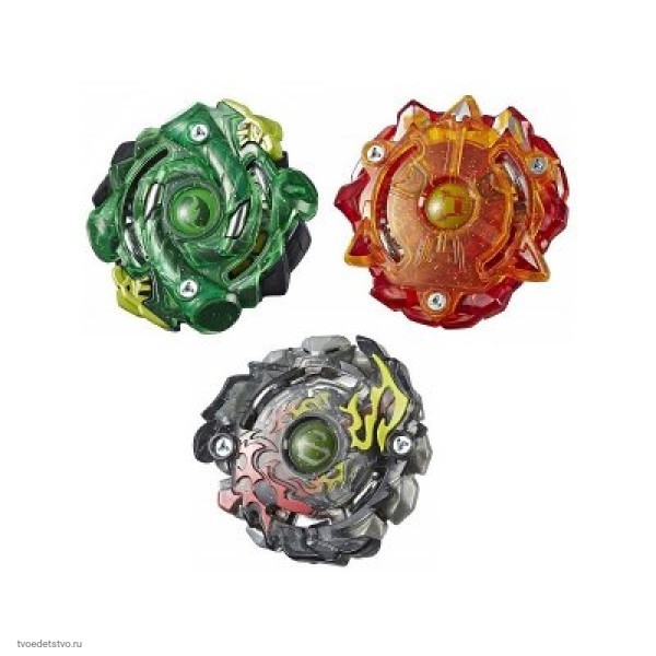 Игрушка от бренда Hasbro Bey Blade Волчок СлингШок. Волчок Bey Blade состоит из трёх деталей. Верхняя бывает 4 видов в зависимости от того, какая особенность в ней преобладает: выносливость, атака, баланс, защита. Центральная деталь различается по весу и форме и регулирует центр тяжести. Основание волчка влияет на то, как он будет вращаться. Комбинируя различные верхние, центральные детали и основания, можно каждый раз создавать уникальный волчок, подходящий для борьбы с определенным противником. Поэтому, чем больше волчков будет в коллекции, тем больше комбинаций можно составить, и тем больше шансов выиграть.