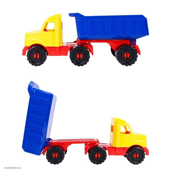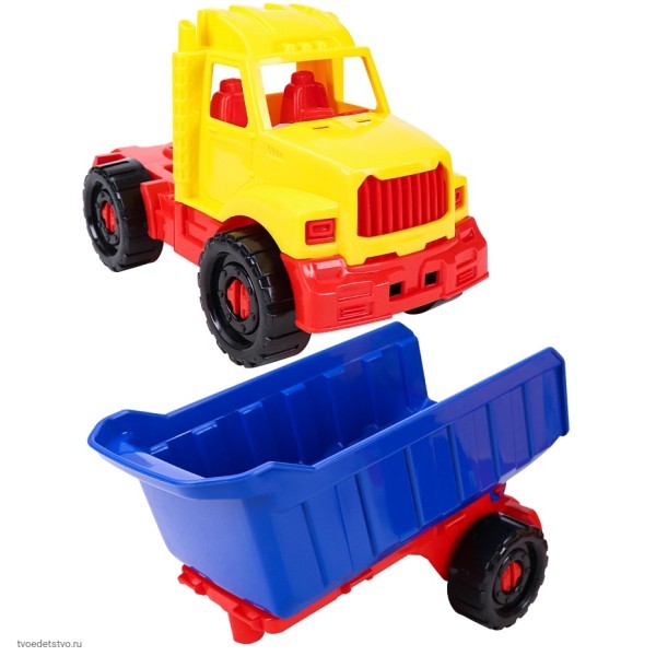 Игрушечная машинка-тягач с прицепом серии "БИЗОН" понравится любому ребенку! Она изготовлена из высококачественного пластика. Подходит для игры в помещении или на открытом воздухе. Игрушка полезна для развития координации, мелкой моторики пальцев рук, восприятия цвета и воображения. Размер: 31 см.