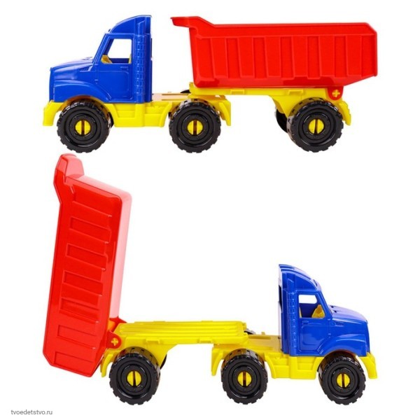 Игрушечная машинка-тягач с прицепом серии "БИЗОН" понравится любому ребенку! Она изготовлена из высококачественного пластика. Подходит для игры в помещении или на открытом воздухе. Игрушка полезна для развития координации, мелкой моторики пальцев рук, восприятия цвета и воображения. Размер: 31 см.