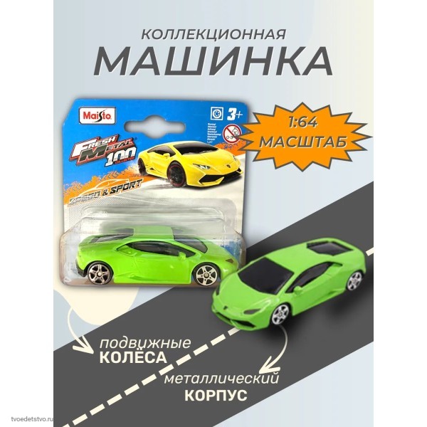 Масштаб 1:64 идеально подходит для игры и коллекции. Машинка имеет свободный ход и отлично подходит как гоночная модель для динамичных заездов. Такие маленькие тачки особенно нравятся мальчику, которые любят машинки и эффектные суперкар-игрушки.