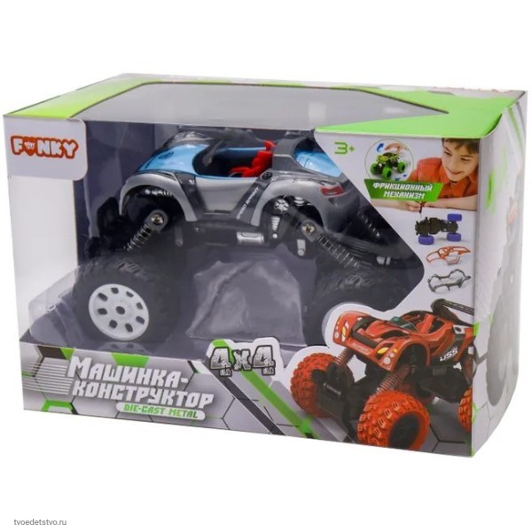Детская фрикционная металлическая машинка КОНСТРУКТОР от Funky Toys отлично развивает моторику рук ребенка. Благодаря встроенному механизму, машинка может легко передвигаться самостоятельно, для этого достаточно потянуть ее назад. Данная модель подойдет не только для игр юных автолюбителей, но может занять достойное место в вашей коллекции конструкторов. Машинка изготовлена из высококачественных, ударопрочных материалов, имеет детализированный салон. Яркий и компактный багги скрывает в себе зверский характер, а высокая подвеска обеспечивает наилучшую проходимость в условиях бездорожья.