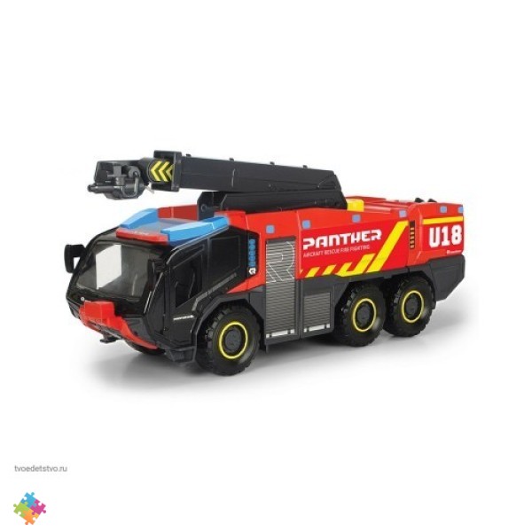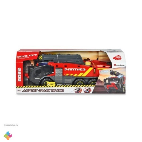 "Дикки Тойс в аэропорту. Пожар в аэропорту может быстро выйти из-под контроля. Хорошо, что пожарная команда аэропорта находится на месте. Автомобиль оборудован детальной кабиной водителя, дополнительным пространством для хранения, светом и звуком, а также емкостью для воды. Функция разбрызгивания воды на выдвижном рычаге очень проста в использовании вручную и является настоящей особенностью для детей. Удивите своих детей этой необыкновенной пожарной машиной Dickie Toys.