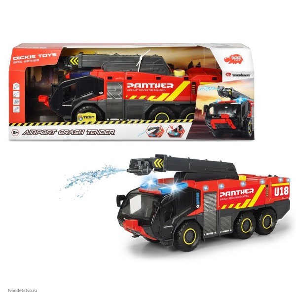 Пожар в аэропорту может быстро выйти из-под контроля. Хорошо, что пожарная команда аэропорта находится на месте. Автомобиль оборудован детализированной кабиной водителя, дополнительным пространством для хранения, светом и звуком, а также емкостью для воды. Функция разбрызгивания воды на выдвижном рычаге очень проста в использовании вручную и является настоящей особенностью для детей. Удивите своих детей этой необыкновенной пожарной машиной Dickie Toys.
