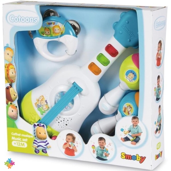 - Детский бубен и маракасы украшены персонажами Cotoons , имеют легкий вес и удобный для захвата маленькими детскими ручками размер. Ими ребенок научится задавать темп музыке.