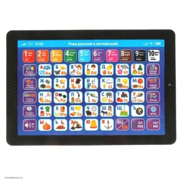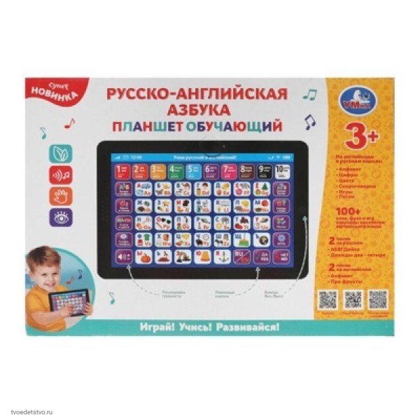 Планшет русско-английская азбука 400 слов Умка HT568-R1. Обучающий планшет «Русско-английская азбука» ТМ «УМка» – теперь учиться вдвойне интереснее. Игрушка-планшет – креативный, интересный и полезный подарок для развития и игры. Вместе с этой развивающей игрушкой ребёнок откроет для себя мир русского и английского языка, начиная с букв и слогов и заканчивая скороговорками и фразами из песен. Развитие: звуковое восприятие и музыкальный слух, память, мелкую моторику, фантазию.