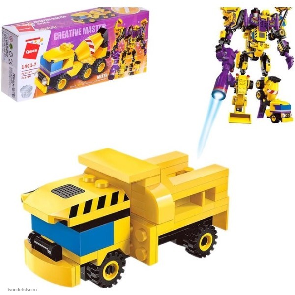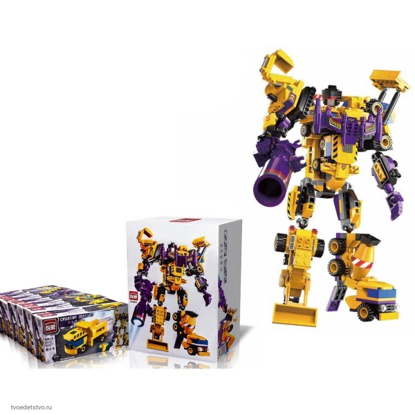 Конструктор Transformer непременно понравится ребенку. Фантастический робот, выполненный в ярких цветах, всего за несколько движений превратится в строительную технику. Вооруженный робот-трансформер дает возможность ребенку разыграть множество захватывающих сюжетов, а строительная машинка оснащена вращающимися колесами, которые добавят реалистичности в игровой процесс.