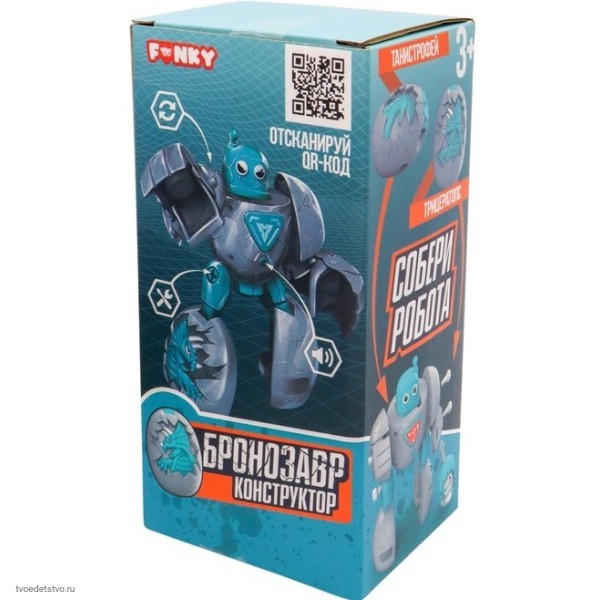 Конструктор Funky Toys Бронозавр - это робот, броня которого выполнена из самых прочных материалов. Следуйте инструкции и соедините части Танистрофея и Трицератопса, чтобы завершить сборку Бронозавра. В каждом наборе есть уникальная отвертка для легкой сборки - какая попадется тебе? Конструктор оснащен звуковыми эффектами.