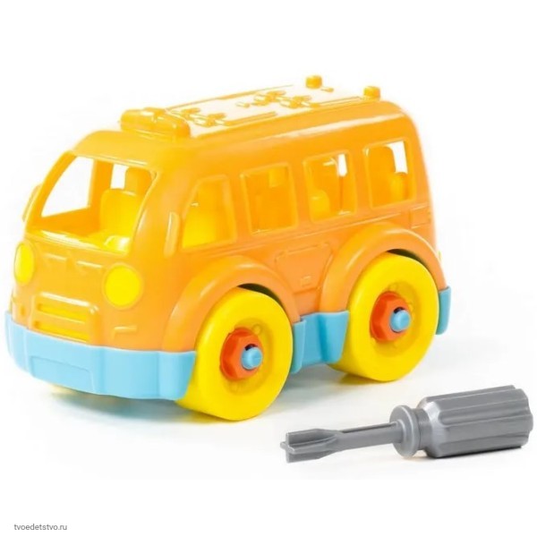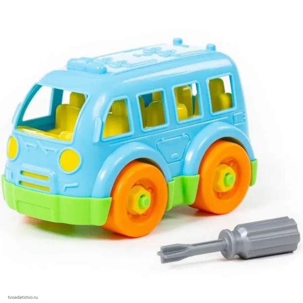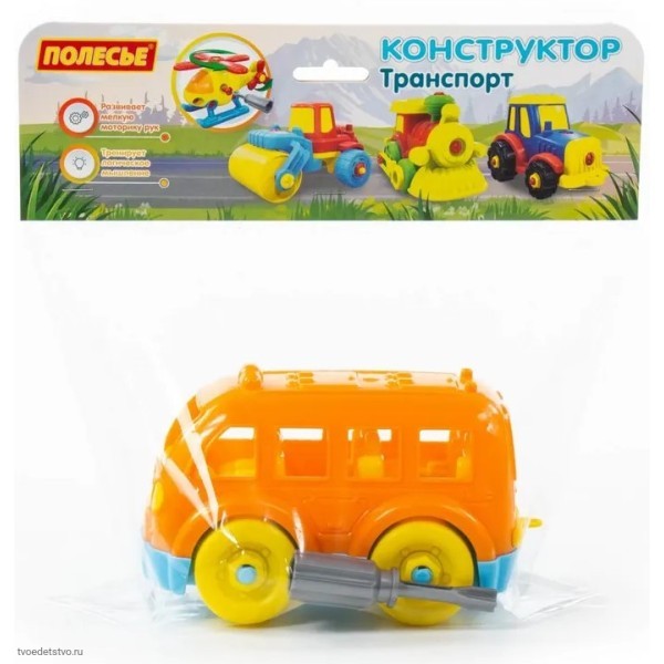 Конструктор-транспорт «Автобус малый» от компании «Полесье» - это универсальная игрушка 2 в 1, которая может служить малышу в качестве конструктора и машинки для сюжетных игр. Игрушка выполнена из высококачественного пластика в яркой цветовой гамме. В комплекте имеется крестообразная отвертка. Игра с конструктором «Автобус малый» способствует реализации конструктивно-модельной деятельности ребенка, развитию любознательности и смекалки.