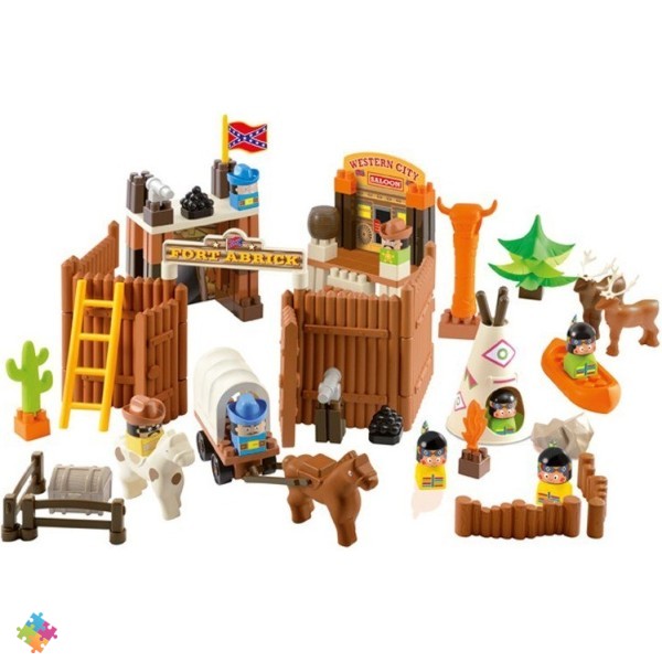Конструктор Вестерн Ecoiffier перенесет ребенка в увлекательный мир Дикого запада. Поиски золота, война с краснокожими, опасности природы - все эти игры станут еще более реалистичными, благодаря интересным аксессуарам, фигуркам, которые можно собрать самостоятельно.