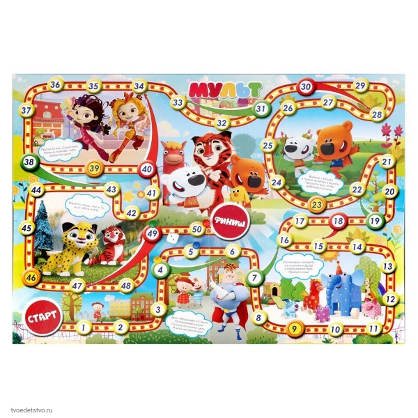 В комплекте: игровое поле 42х58 см, кубик, 4 фишки.
