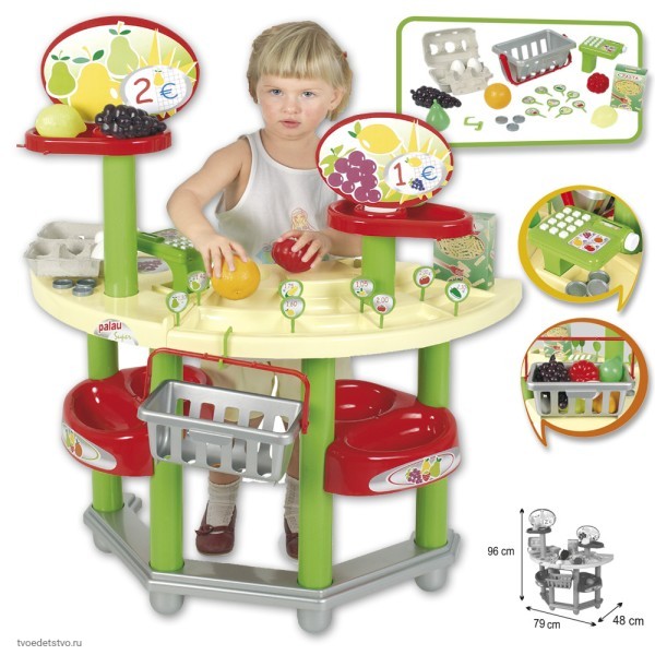 С помощью такого набора можно разыграть реальную сценку работы в супермаркете. Стоя за кассой нужно будет пробивать продукты, которые клиент решил купить. Такая игра научит детей более ответственно относится к регулярным походам в супермаркет, обучит ответственности и умению вести финансовый учет, вежливому общению с клиентами и продавцами. А для того, чтобы правильно расплатиться или выдать сдачу ребенок должен будет все просчитать, что очень хорошо сказывается на логике и мышлении.