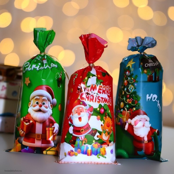 Новогоднее настроение в каждой упаковке! Пакет для сладостей «Новогодний микс» (13×27 см) — яркое решение для праздничных подарков. Сочетание красного, зелёного и синего цветов создаёт веселое новогоднее настроение.