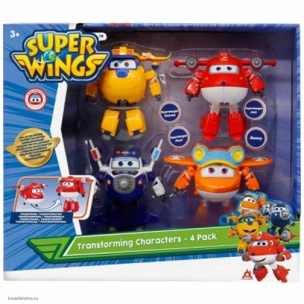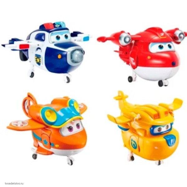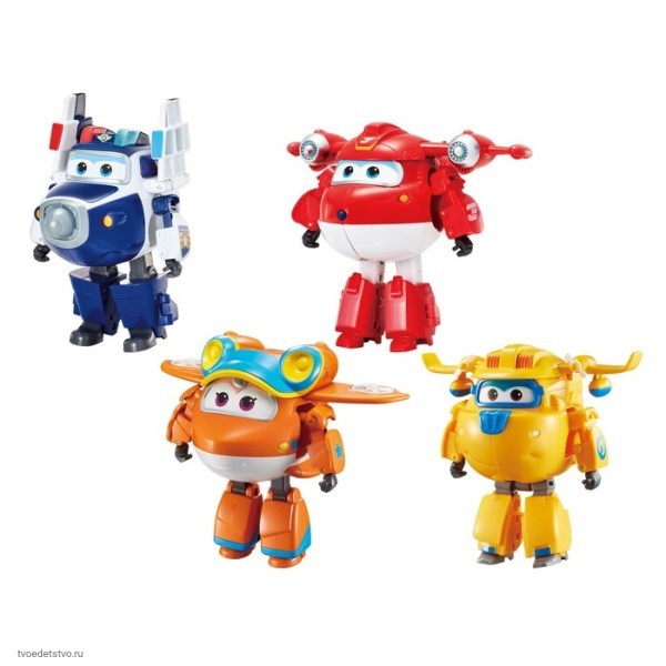 Набор мини роботов трансформеров Джетта, Донни, Санни и Пола - игрушка для детей в возраст от 3х лет. Полностью повторяет облик главных героев из мультфильма Супер Крылья.