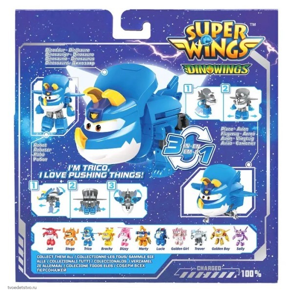 Погрузитесь в увлекательный мир воздушных приключений вместе с роботом-трансформером Трико из любимого мультфильма «Супер Крылья» ! Трико - смелый и проворный персонаж из «Супер Крылья» (сезон 9).