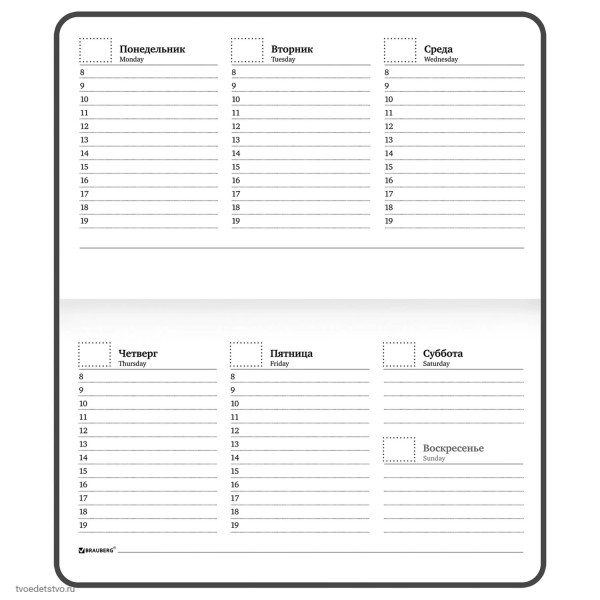 Недатированный планинг-еженедельник BRAUBERG предназначен для ведения записей. Отсутствие дат делает его уникальным товаром, который можно начать использовать в любое время года. Надежен и практичен в применении!