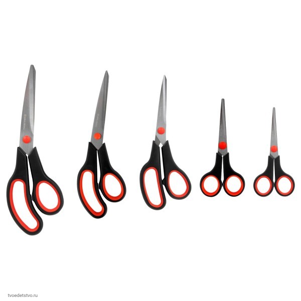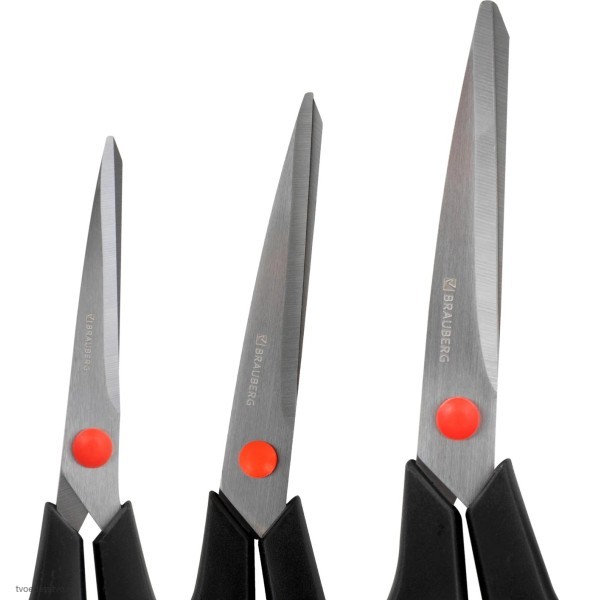 Набор универсальных ножниц BRAUBERG. В этом наборе вы найдете пять разных размеров ножниц, которые станут вашими незаменимыми помощниками как в офисе, так и дома. Они идеально подходят для резки бумаги, картона и других материалов.