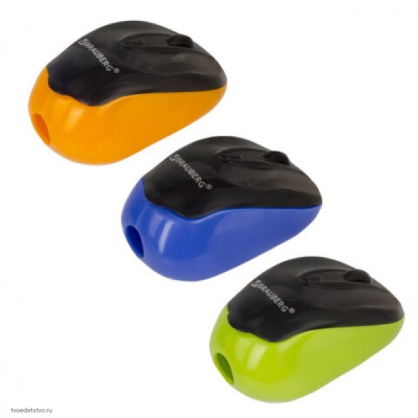 Эргономичный корпус в форме компьютерной мышки выполнен из пластика. Острое стальное лезвие обеспечивает быструю и легкую заточку. Карандаш затачивается аккуратно, а опилки остаются в специальном контейнере. Компактные размеры (25х31х52 мм) позволят поместить точилку в пенал, а благодаря интересной форме она не затеряется на парте или столе среди других принадлежностей.