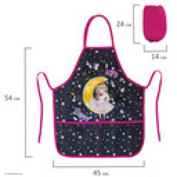 Выполнен из плотного полиэстера с водоотталкивающей пропиткой. Яркая и четкая печать дизайна на двойном кармане фартука. Имеет возможность регулировки по росту. Подходят детям разных возрастов. В комплекте два нарукавника. Размер нарукавников – 24х14 см.