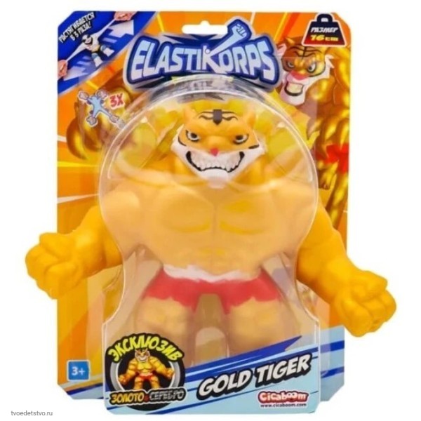 Сокрушительная новинка Elastikorps Fighters! Большая фигурка-тянучка бойца Тигра в динамической позе. Гига размер - 16 см. Тигр выполнен в золотом цвете. Фигурка растягивается в 3 раза в возвращается в исходную форму. Фигурку можно скручивать, сжимать и тянуть. Устраивай поединки героев и стань самым сильным бойцом! В коллекции 14 самобытных героев. Упаковка: брендированный блистер (17,5х24,5 см). Игрушка - унисекс и подойдет как мальчикам, так и девочкам.