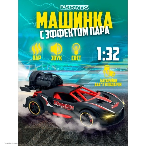 Встречайте новинку от Funky Toys! Машинка с функцией пара – «вау-эффект» в каждой гонке! Стильная и яркая машинка в масштабе 1:32 не просто круто выглядит – она умеет выпускать пар, будто настоящий спорткар на старте. Машинка выполнена из качественного металла в технологии die-cast, с ярким гоночным дизайном и крупной «турбиной» в задней части кузова. Уникальный паровой эффект привлечёт внимание не только детей, но и взрослых! Внутрь машинки можно залить воду с помощью пипетки, которая входит в набор. Благодаря этому машинка может выпускать пар, имитируя выхлоп мощного двигателя.