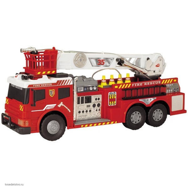 Пожарная машина SOS в действии! Быть пожарным на один день - это мечта, которая заставляет глазки детей гореть. Пожарная машина Dickie Toys SOS превращает детей в ответственных пожарных и дает им представление о профессии посредством игры. Ускорение контролируется кабельным пультом дистанционного управления, а световые и звуковые эффекты сигнализируют о прибытии спасательной команды. Лестница поворачивается на 350 градусов, чтобы поднять спасательную корзину точно туда, где она нужна. Шланг пожарного пульта дистанционного управления и другие аксессуары, в том числе огнетушители и конусы, обеспечивают еще больше удовольствия для детей, играющих в качестве аварийных помощников. Питание: 2 батарейки AA