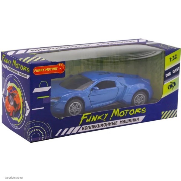 Машинка металлическая от «Funky toys» - отличный выбор для любителей машинок и скорости. Эти машинки точные копии модели машинок из жизни, они отлично дополнят игрушечный гараж. Благодаря встроенному инерционному механизму, гоночная машинка может самостоятельно передвигаться от небольшого толчка рукой. У игрушки для мальчиков резиновые шины и отрывающиеся двери. Запустите игрушечный транспорт в гоночное испытание и соревнуйтесь с друзьями! Машинка детская надолго привлечет внимание вашего ребенка, ведь с ней можно придумать интересные и захватывающие игры и сюжеты, играть с друзьями. Машинки детские развивают воображение, координацию, мелкую моторику, сноровку и ловкость. Инерционная машинка идеальна не только для игр маленьких автолюбителей, но и отличный подарок для мужчины - машина приятно удивит коллекционеров и займет достойное место на полке в коллекции. Машина игрушка - это идеальный подарок ребенку на любой праздник: новый год, день рождения, рождество, именины или просто так. Детская машинка изготовлена из высококачественных, ударопрочных материалов, имеет цельнолитой корпус и детализированный салон. Так как игрушка для мальчика ударопрочная, ее можно брать с собой в детский сад, на прогулки и в путешествия. Коллекционные машинки масштабом 1:32. В коллекции машинок представлены: гоночные машинки, внедорожники, легковые автомобили, ретро машинки и спецтехника. Машинка игрушка - отличный подарок для мальчика, улучшите свою коллекцию мини автомобилей и насладитесь восхитительной игрушкой от Funky Toys!