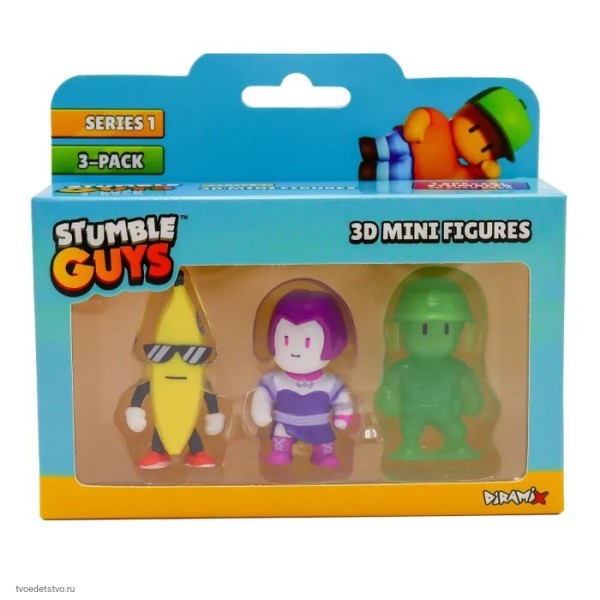 Встречайте новую уникальную коллекцию лицензионных фигурок Stumble Guys! Stumble Guys – это популярная по всему миру мобильная игра, в которой игроки преодолевают препятствия и соревнуются друг с другом, чтобы дойти до финиша первым. Игру успели оценить не только пользователи, но и многие известные инфлюэнсеры и блогеры. Она так быстро завоевала сердца игроков, что стала безусловным хитом! Любимые герои онлайн-игры теперь в виде коллекционных 3D-фигурок! В коллекции представлены 26 лицензионных 3D-фигурок. Благодаря красивой упаковке с окном, стилизованной под Вселенную игры, это отличный подарок для фанатов любого возраста. • Размер: 5 см • 3 фигурки в упаковке с окном • Официальная лицензионная продукция • В ассортименте есть уникальные фигурки: светящиеся в темноте, хромированные, кристаллические и блестящие • Стилизованная упаковка • Высокая детализация и прорисовка мелких элементов • В коллекции 26 героев Лицензионные фигурки Stumble Guys изготовлены из безопасных и качественных материалов, а благодаря высокой детализации герои выглядят так же, как персонажи в игре. Погрузитесь в безумный мир Stumble Guys, в котором вас ждут хаос и веселье, вместе с новой эксклюзивной коллекцией 3D-фигурок!