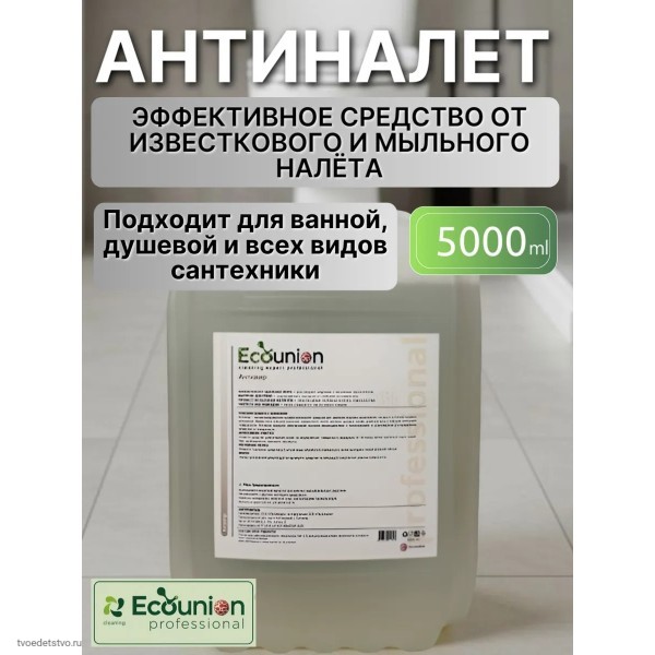Антиналёт 5 литров — универсальное моющее средство для регулярной уборки ванной комнаты и сантехники. Формула разработана для эффективного удаления известкового и мыльного налёта, следов воды и минеральных отложений. Средство подходит для ухода за поверхностями, устойчивыми к щелочной среде, и может использоваться как антиналёт для ванной и сантехники. Объём антиналёт 5 л обеспечивает экономичный расход и удобство при частом применении.