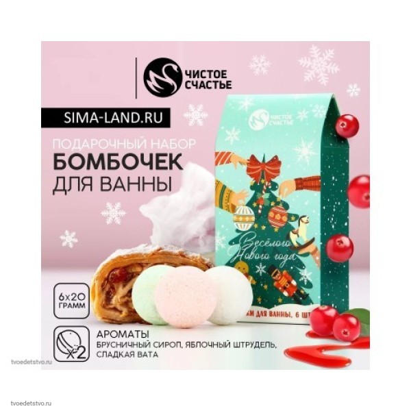 Подарите близким радость и заботу с праздничным набором для ванны! Время новогодних чудес - это особенный период, когда так приятно дарить незабываемые эмоции. Бомбочки для ванны помогут создать атмосферу уюта и волшебства, превращая каждое купание в непревзойденную процедуру ухаживания за телом и душой. Косметические средства этого набора обеспечивают нежный уход, насыщая кожу полезными компонентами. Каждая бомбочка содержит натуральные ингредиенты, которые питают и увлажняют. Это изделие идеально подходит для тех, кто ценит расслабление после насыщенного дня. Просто бросьте бомбочку в теплую воду и насладитесь волшебством шипучего эффекта, который помогает снять усталость и восстановить силы. Богатый аромат наполняет пространство легкими нотками свежести, создавая романтичную атмосферу домашнего SPA-салона. Приятное воздействие бурлящих частиц заметно улучшает настроение. Настоящее удовольствие, замаскированное под простой ритуал гигиены.