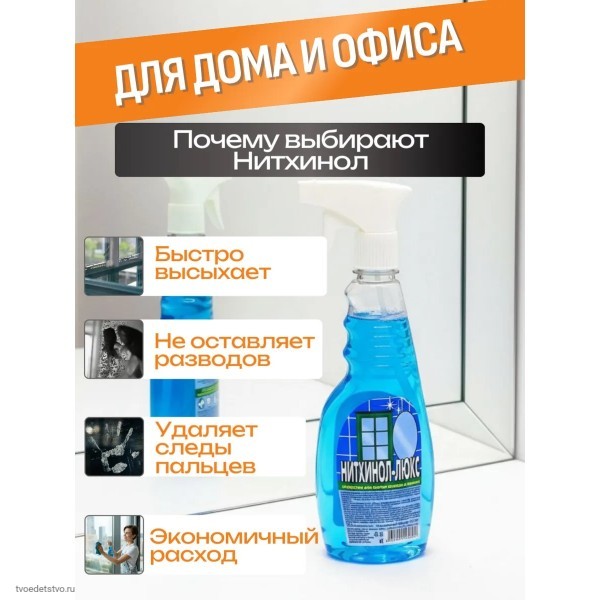 Нитхинол — чистящее средство для ухода за стеклянными поверхностями и зеркалами. Подходит для регулярной уборки в доме, квартире и офисных помещениях. Помогает поддерживать чистоту и прозрачность без разводов.
