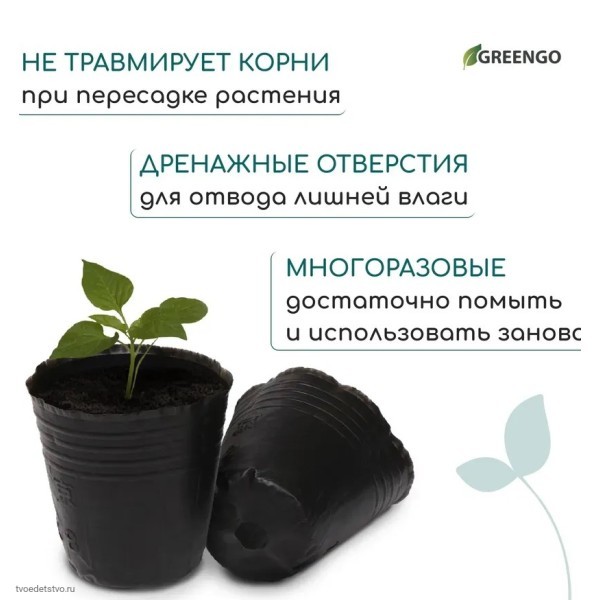 - Комфорт в использовании: небольшой объём позволяет легко перемещать пакеты, переставлять с места на место в зависимости от ваших условий. Маленькие садоводы оценят простоту в обращении с рассадой.