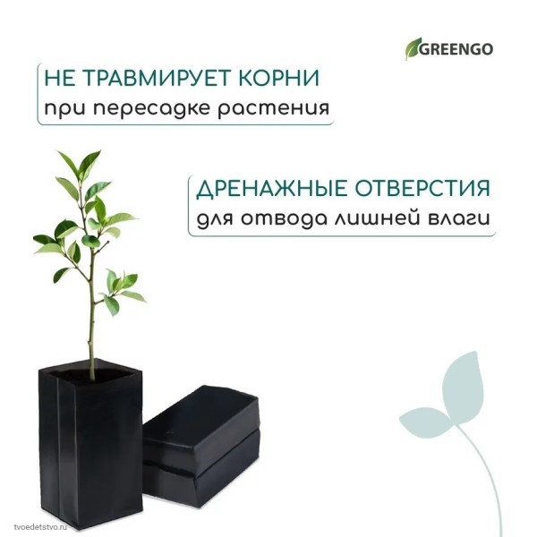 - Дренажные отверстия: перфорация на дне пакетов предотвращает застой влаги, что исключает гниение корней и способствует их здоровому развитию.