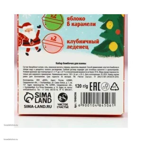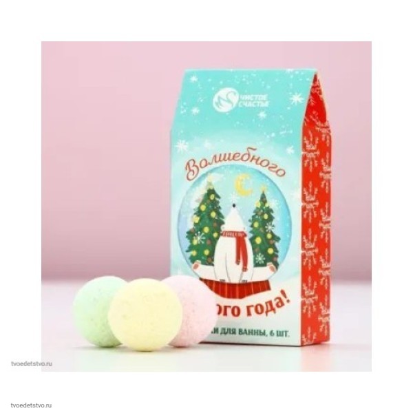 Подарочный набор косметики «Волшебного Нового Года», бомбочки для ванны, 6 х 20 г, аромат лимона и мёда, яблока в карамели и клубничного леденца, ЧИСТОЕ СЧАСТЬЕ