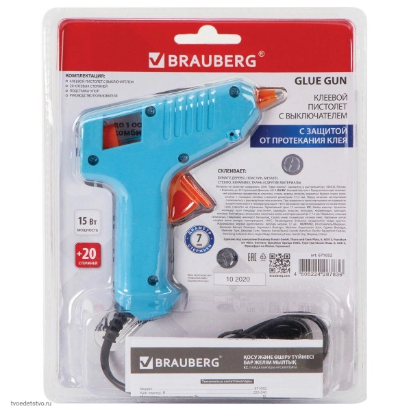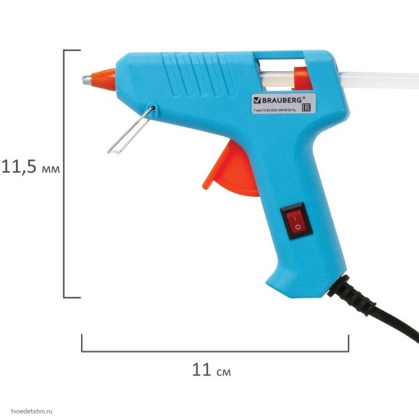 Клеевой пистолет BRAUBERG предназначен для прочной фиксации поверхностей с помощью расплавленной клеевой массы. Является одним из главных помощников в творчестве для изготовления разнообразных поделок, а также в быту для склеивания мелких деталей.
