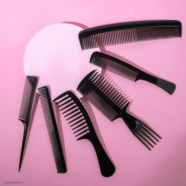 - Разнообразие типов расчёсок: комбинированная, трёхсторонняя, с ручкой и с хвостиком — для различных задач и техник укладки.