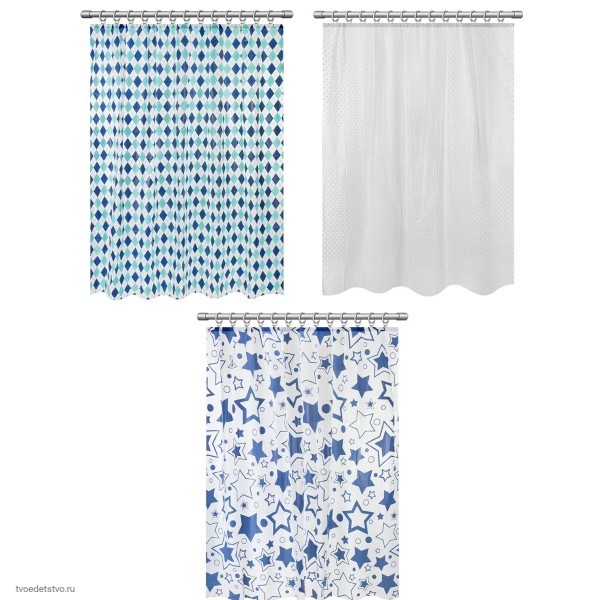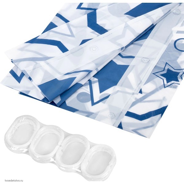 В комплекте с шторкой идут 12 прочных полипропиленовых колец, которые подойдут под любой тип карниза.