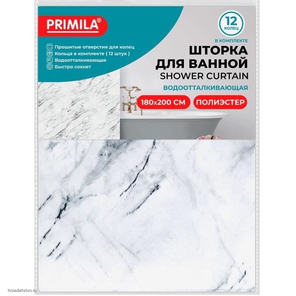 Шторка для ванной комнаты PRIMILA – залог чистоты и уюта ванной комнаты. Используется для защиты пола, стен, мебели и зеркала от брызг. Эта шторка идеально впишется в любой интерьер.