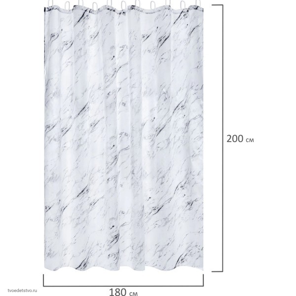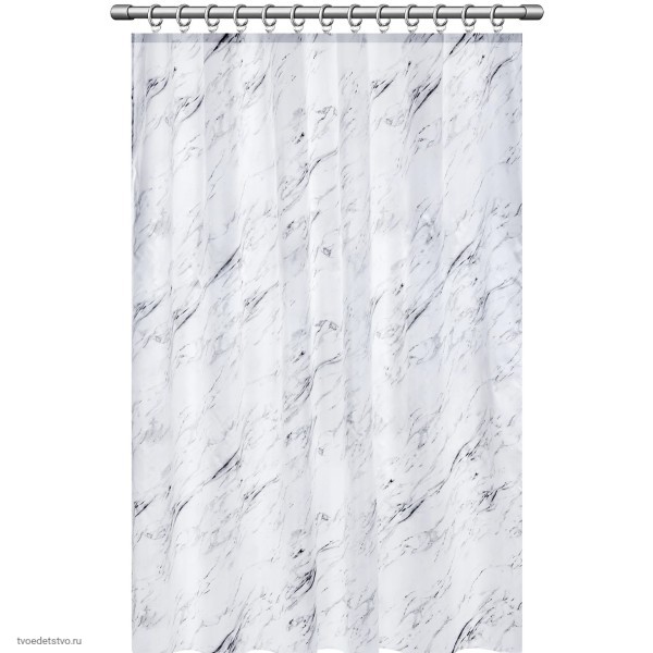 В комплекте с шторкой идут 12 прочных полипропиленовых колец, которые подойдут под любой тип карниза.