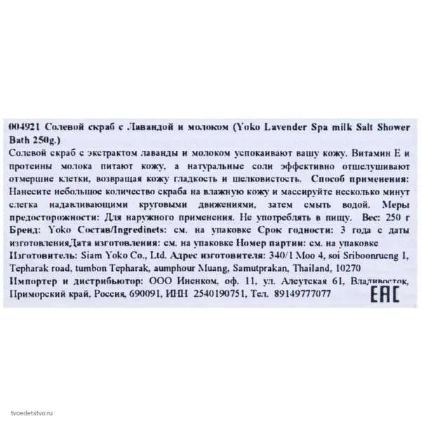 Скраб для тела соляной Тайский 250 г - эффективная тайская косметика для комплексного ухода за телом дома, с лавандой и молоком. Солевой скраб мягко и одновременно интенсивно отшелушивающий: удаляет ороговевшие клетки, выравнивает рельеф и помогает усилить антицеллюлитные процессы. Кожа становится более гладкой, упругой и ухоженной уже после первых применений.