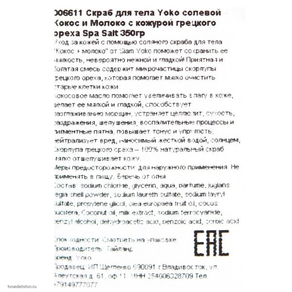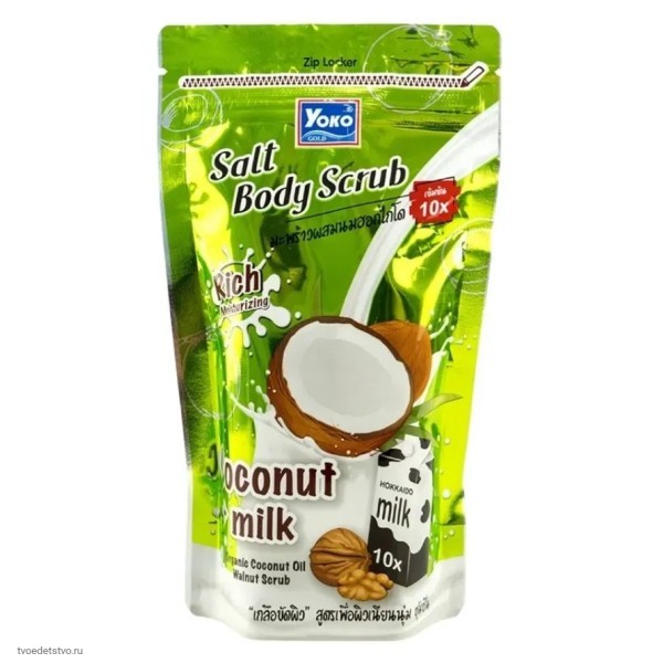 Скраб для тела солевой Тайский с кокосом, 350 г – идеальная тайская косметика для ухода за кожей дома. Этот отшелушивающий скраб мягко удаляет омертвевшие клетки, стимулирует обновление кожи и делает её упругой, мягкой и увлажнённой. Натуральные компоненты – кокосовое масло, молочный экстракт, соль и фруктовое масло – обеспечивают питание, глубокое увлажнение и отбеливание кожи, делая её сияющей и ухоженной.