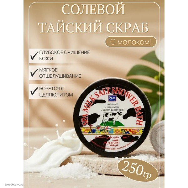 Скраб для тела соляной Тайский, 250 г - эффективная тайская косметика для комплексного ухода за телом дома. Солевой скраб мягко и одновременно интенсивно отшелушивающий: удаляет ороговевшие клетки, выравнивает рельеф и помогает усилить антицеллюлитные процессы. Кожа становится более гладкой, упругой и ухоженной уже после первых применений.