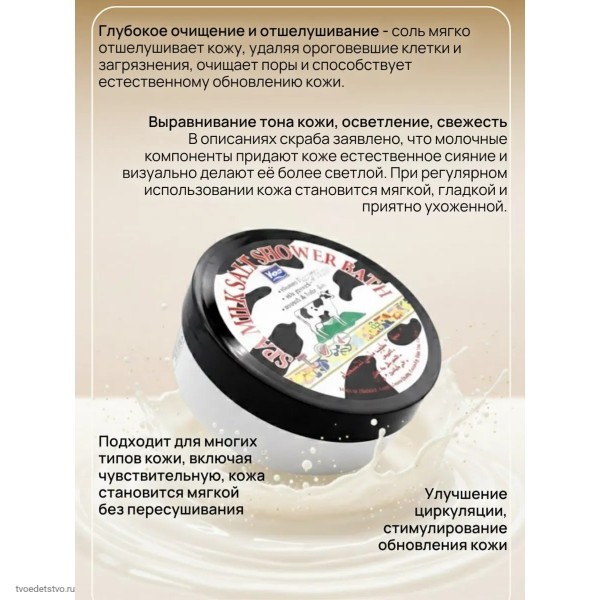 Парфюмированый аромат делает процедуру приятной и расслабляющей. Скраб можно сочетать с бальзам и другими средствами для тела для усиления эффекта. Подходит для женщины и девушек, ценящих качественную косметику и результат без салона.