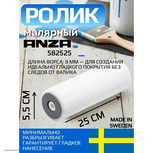 Валик Anza Super Antex 25 см — профессиональный малярный инструмент из высококачественной микрофибры, предназначенный для покраски и лакировки мебели, дверей, кухонь и других гладких поверхностей. Микрофибровое покрытие обеспечивает равномерное нанесение краски, исключает потёки и брызги, создавая идеально гладкое покрытие без следов от валика. Благодаря оптимальной длине ворса - 8 мм- валик подходит для работы с водоэмульсионными, акриловыми и алкидными красками, лаками и эмалями. Удобен в использовании, легко очищается.