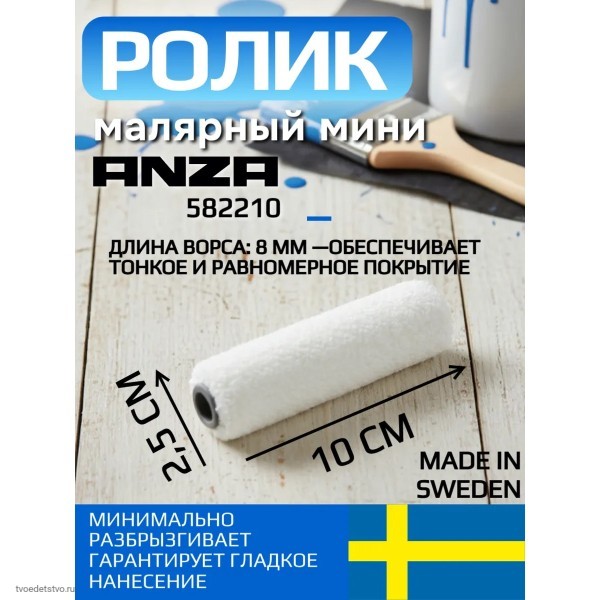 Для валика AnzaSuperAntex582210 (ширина 10 см) известны следующие габариты: